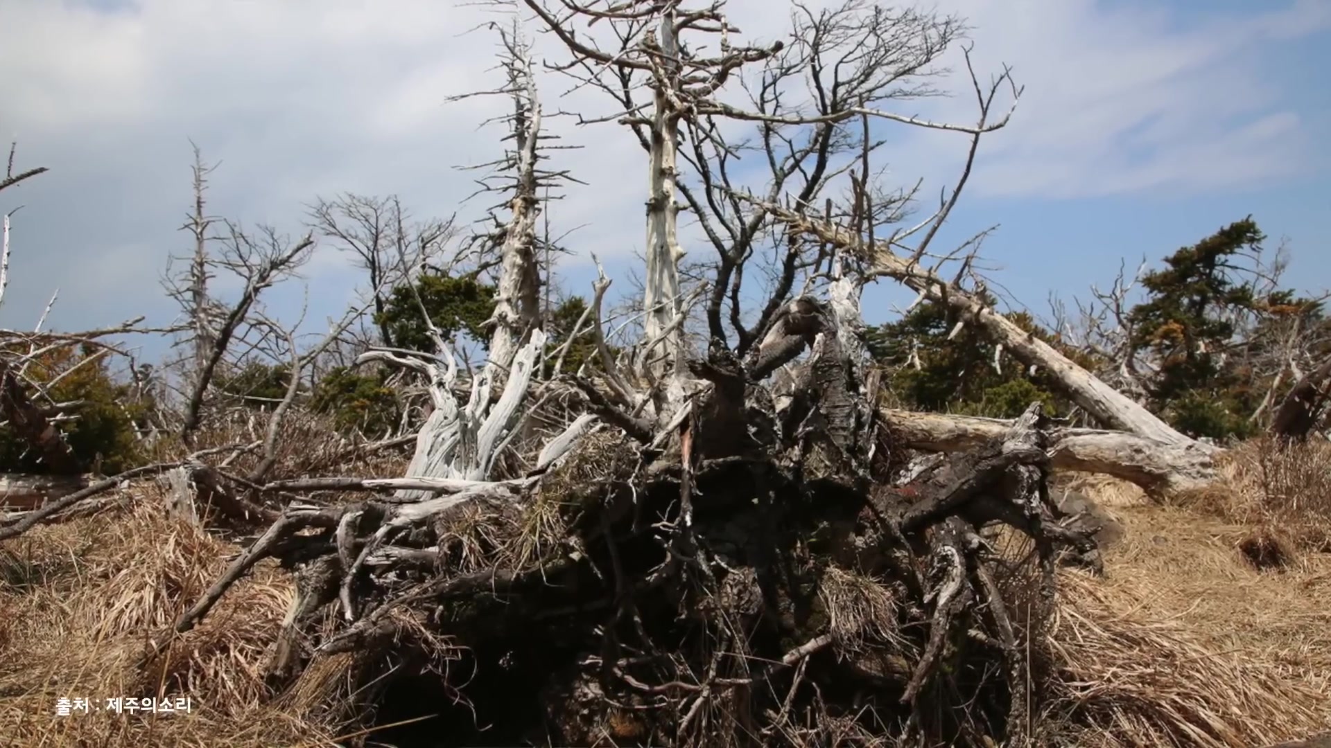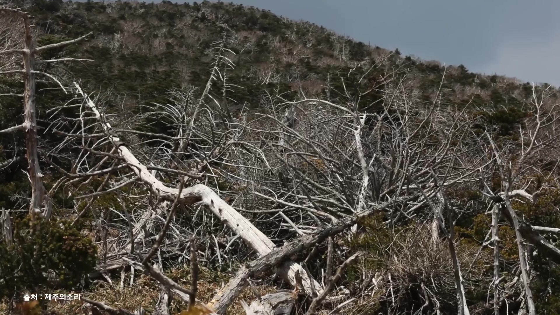 그 한라산의 고산지대에 구상나무 그들이 이제 사는데, 그 친구들이 지구 온난화로 인해서 보면 그 밑에서부터 하얗게 말라죽어 있거든요.