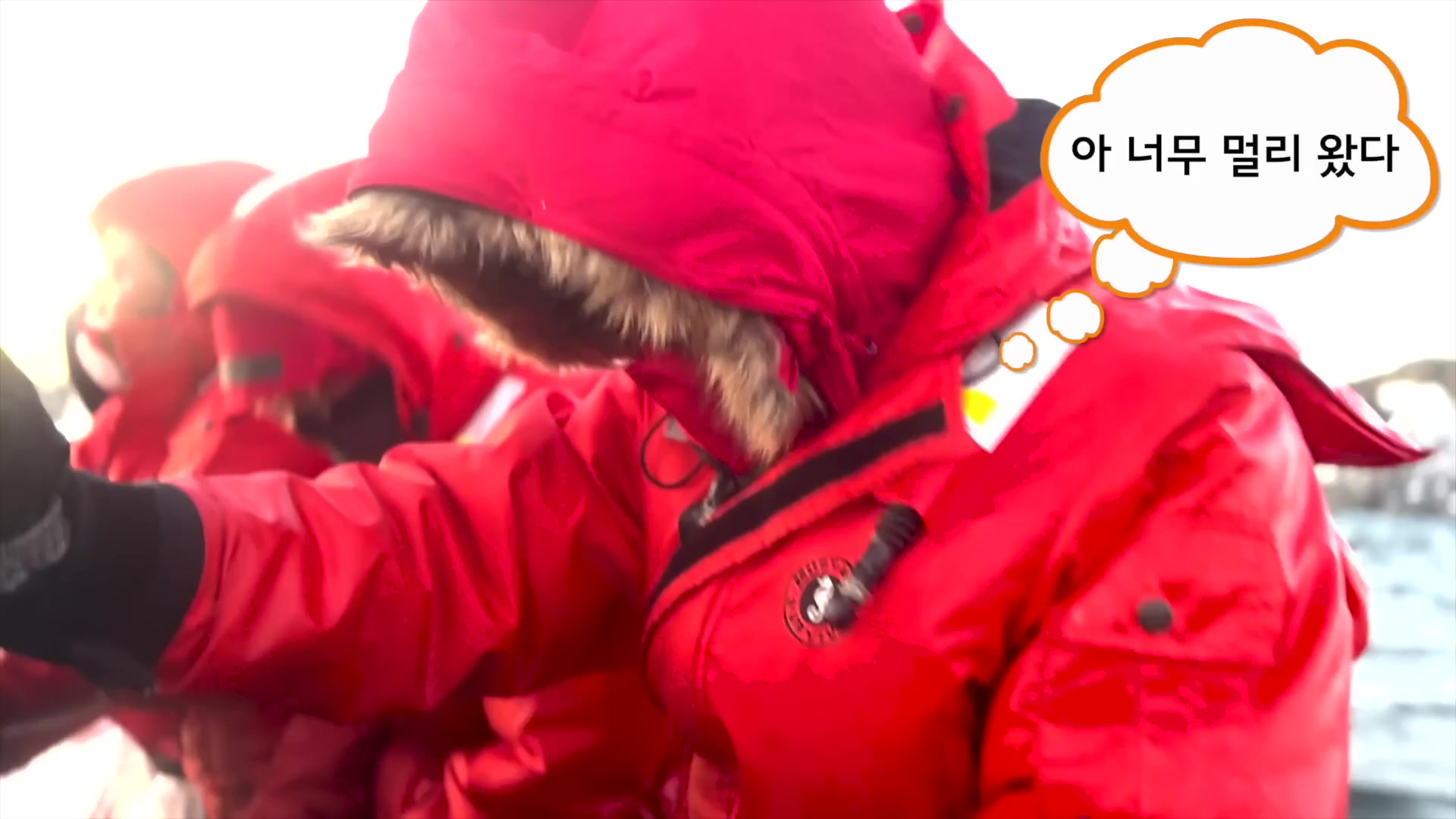 근데 저희가 어떻게 전세기는 타고 들어갔는데, 이 고무 보트를 타고 들어갈 때 날씨가 갑자기 또 안 좋아졌어요.
