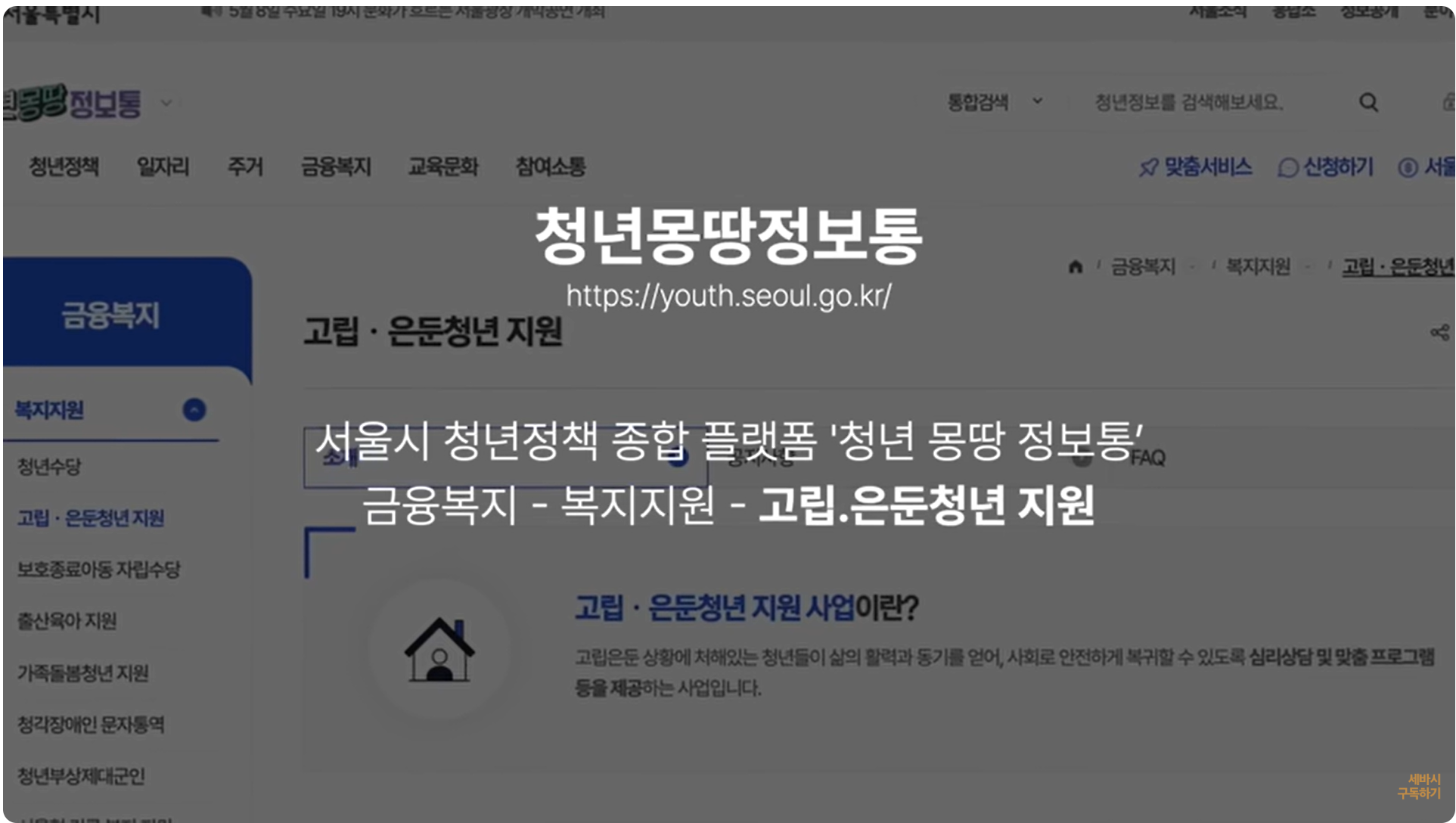 '내가 뭔가 할 만한 게 있을까?' 하고 찾아본 청년 몽땅 정보통에서 서울시 고립운둔 청년 지원 사업을 알게 되었습니다.