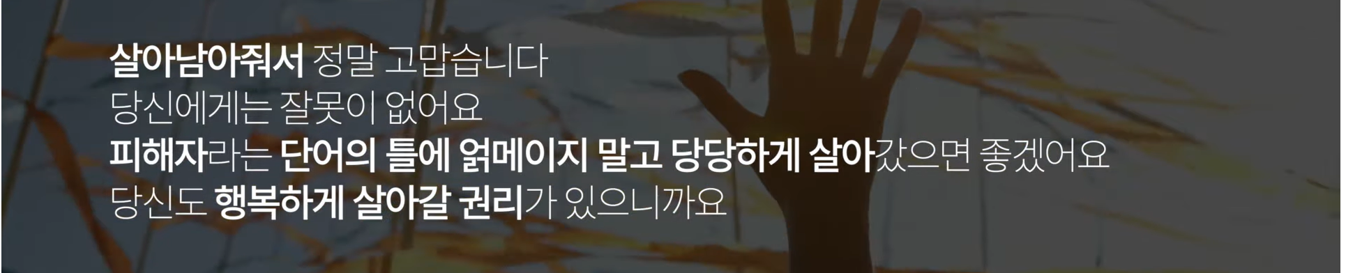 피해자라는 단어의 틀에 얽매이지 말고 당당하게 살아갔으면 좋겠다.