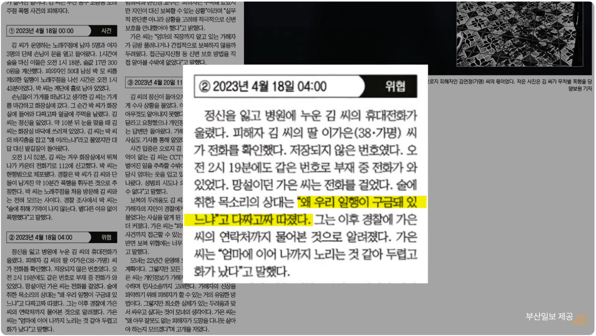 오늘은 저희 단독 보도를 통해 세상에 알려진 부산 돌려차기 사건을 비롯해 당사자가 아닌 제삼자로 밀려난 피해자들의 이야기를 들려드리고자 합니다.