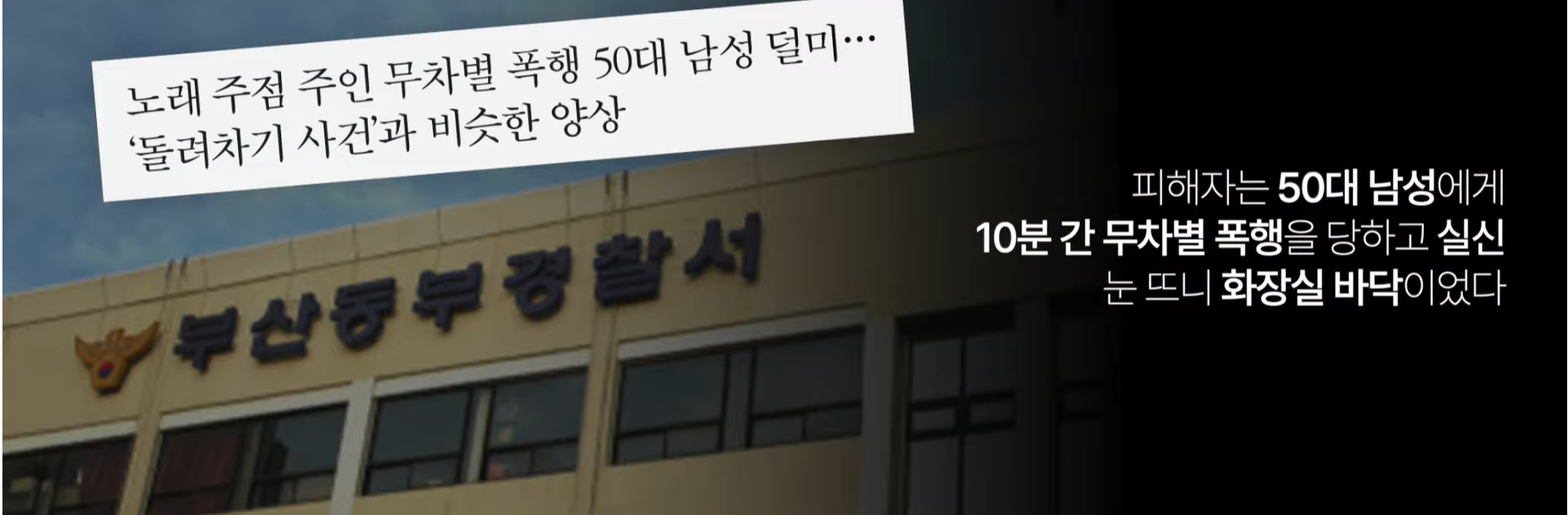 여기서는 부산 돌려차기 사건보다는 좀 덜 알려진 부산 초량동 노래주점 폭행 사건을 알려드리고 싶습니다.