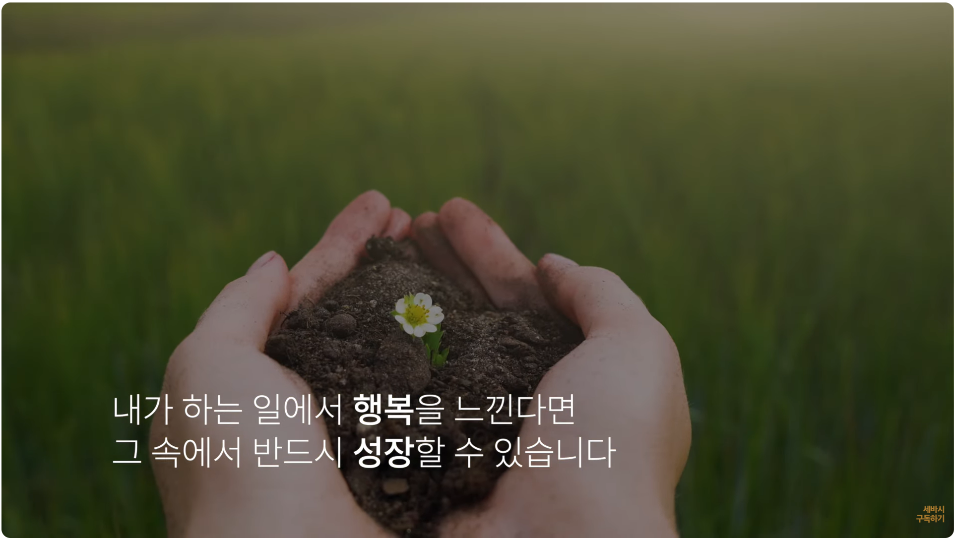 어떻게 일을 하든 어떤 것을 하든지 자기가 하는 일에 대해서 행복감을 느끼면 저는 나 자신을 성장시키고 드러내는 것이라고 생각을 합니다.