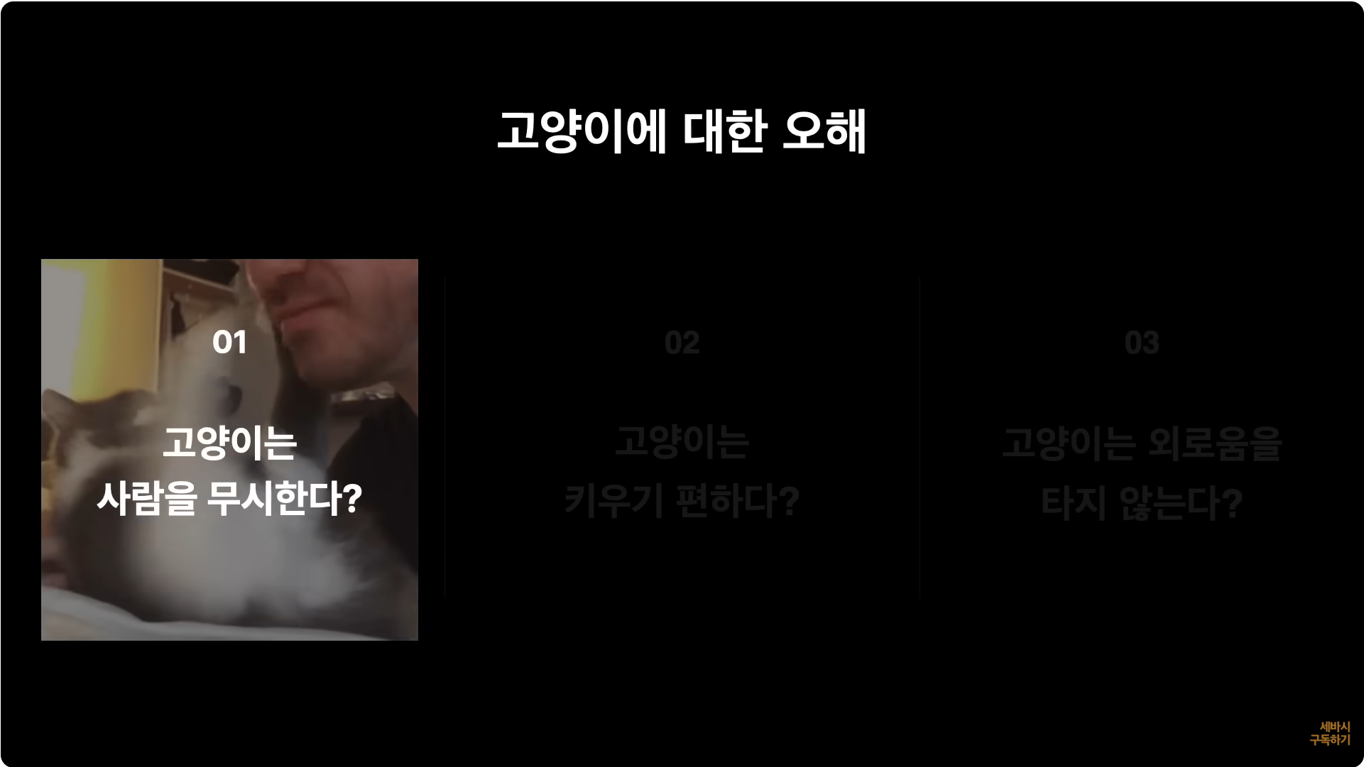 그래서 먼저 고양이에 대한 오해가 되게 많죠. 선입관