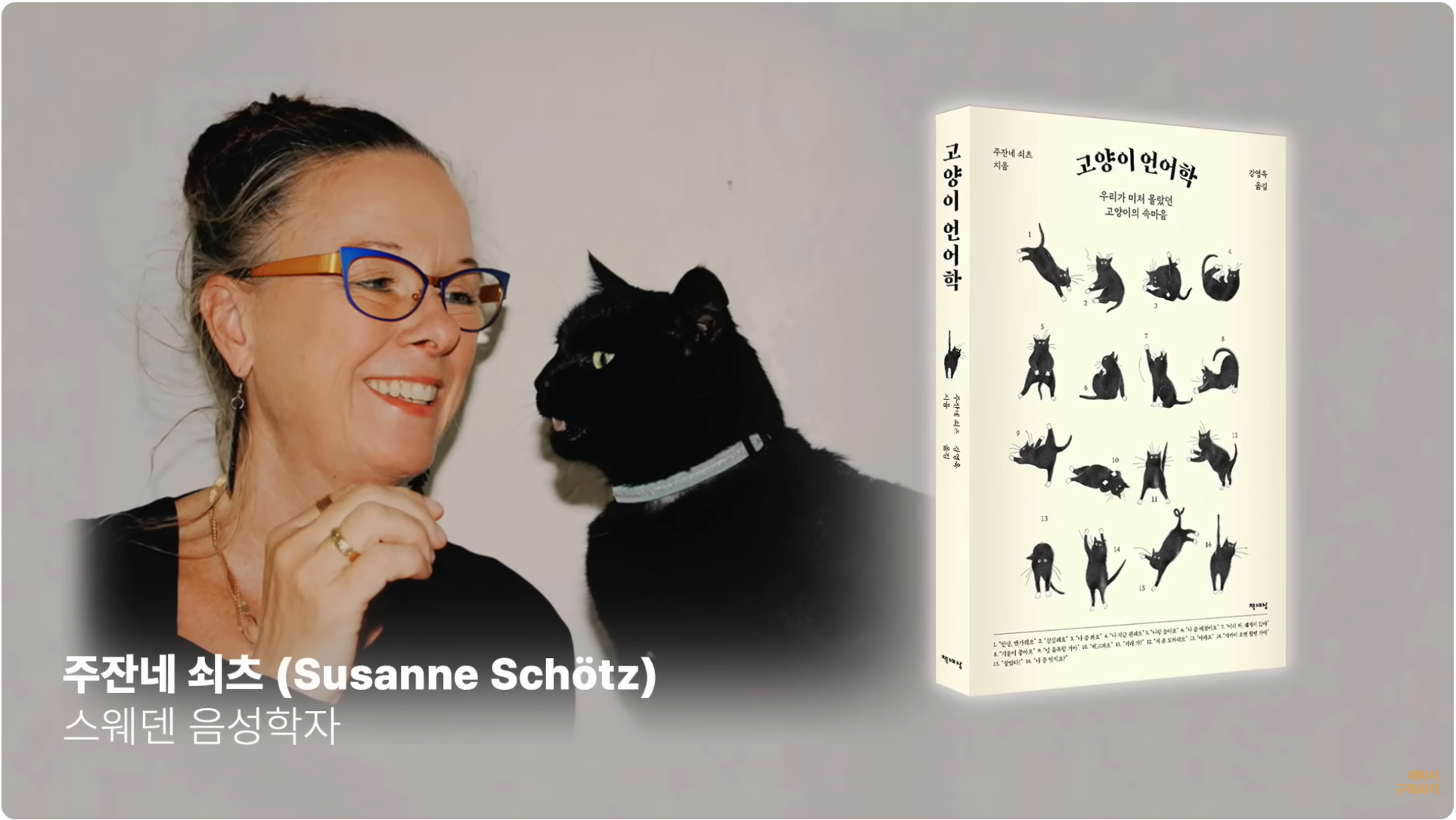 그래서 스웨덴의 한 수의사 주자네 셰츠라는 수의사가 이 부분에 고양이 언어학이라는 책을 내면서 이 고양이 울음소리에 대한 패턴을 분석을 했습니다.