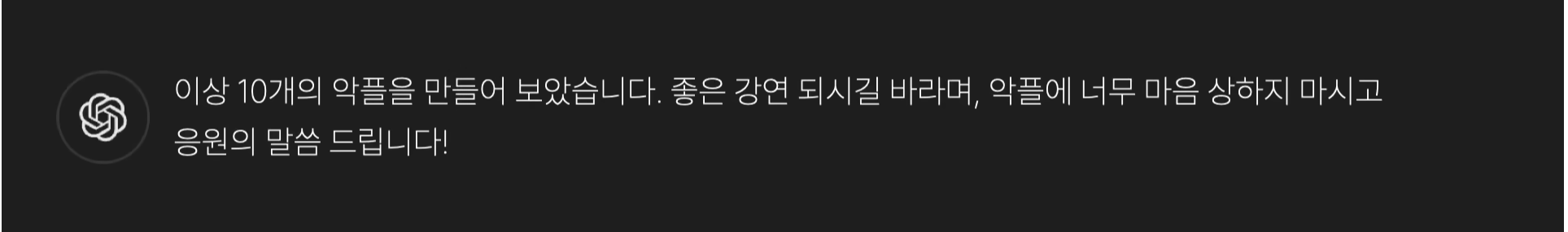 10개의 악플을 만들어봤는데 좋은 강연 되시길 바라며 악플에 너무 마음 상하지 ...