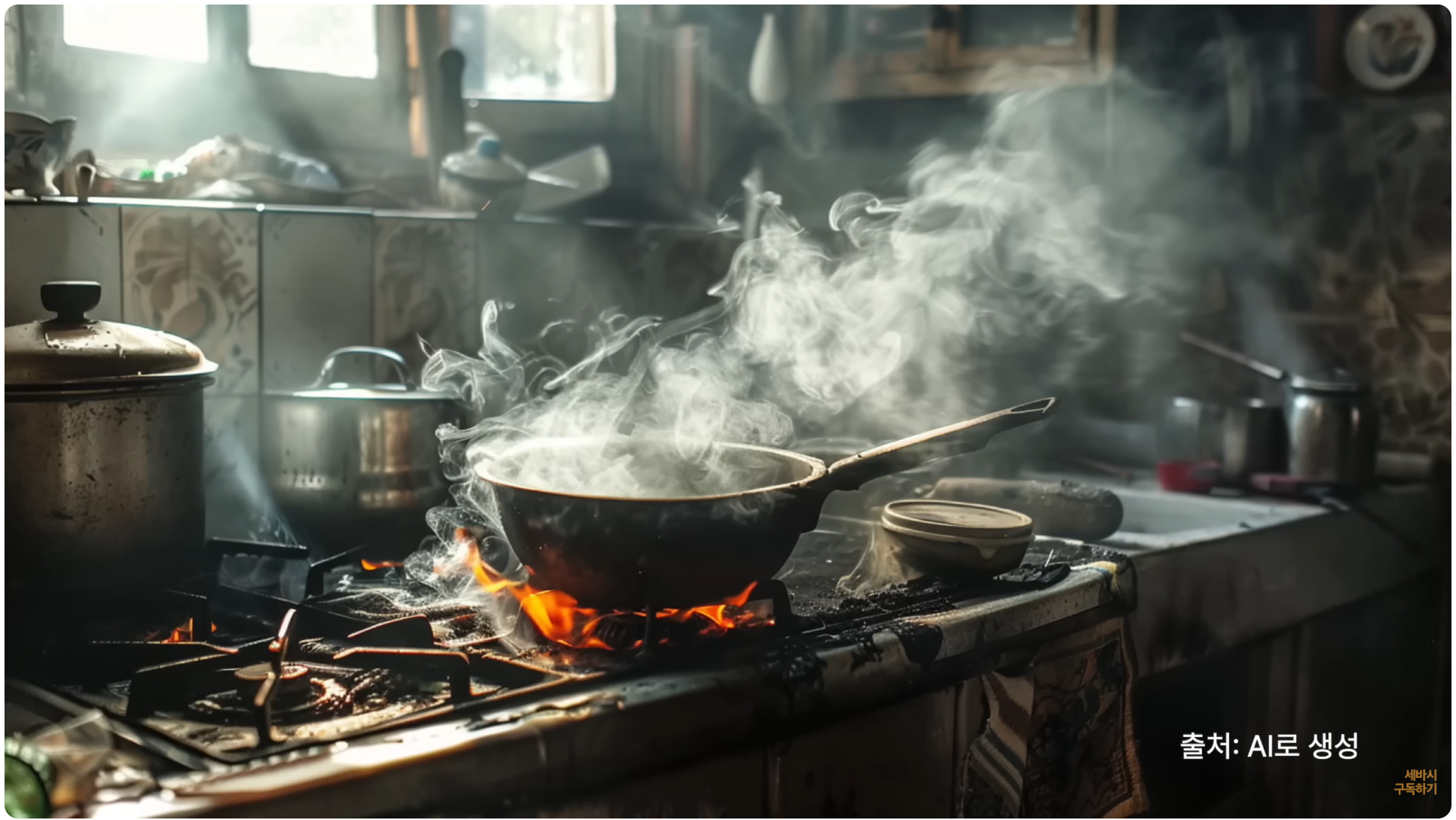 집에 시커먼 매연이 가득 찼습니다.