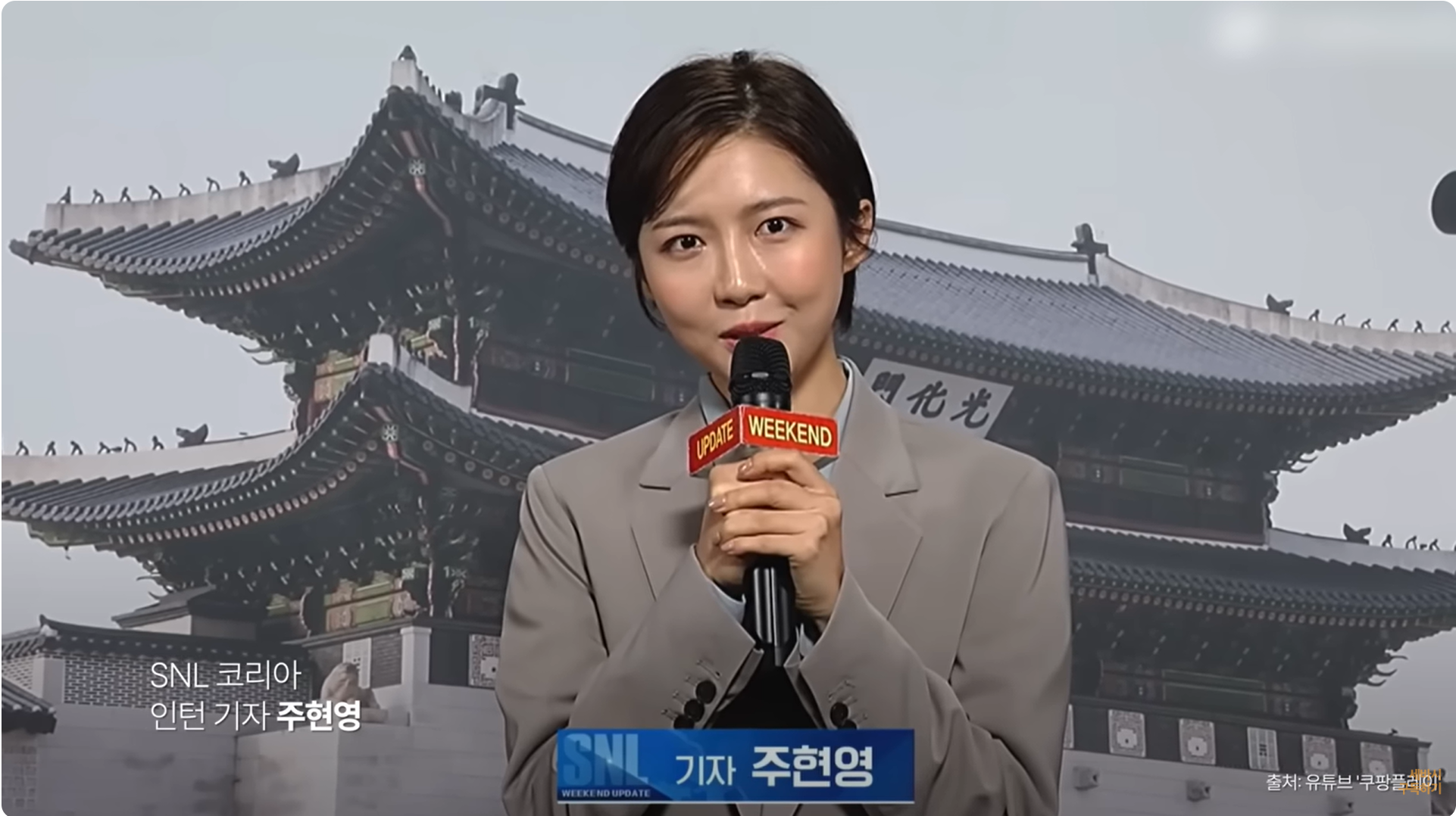 제가요. 여러분 기억하실지 모르겠습니다마는 SNL 코리아라는 프로그램에서 주현영 기자가 등장한 적이 있어요.