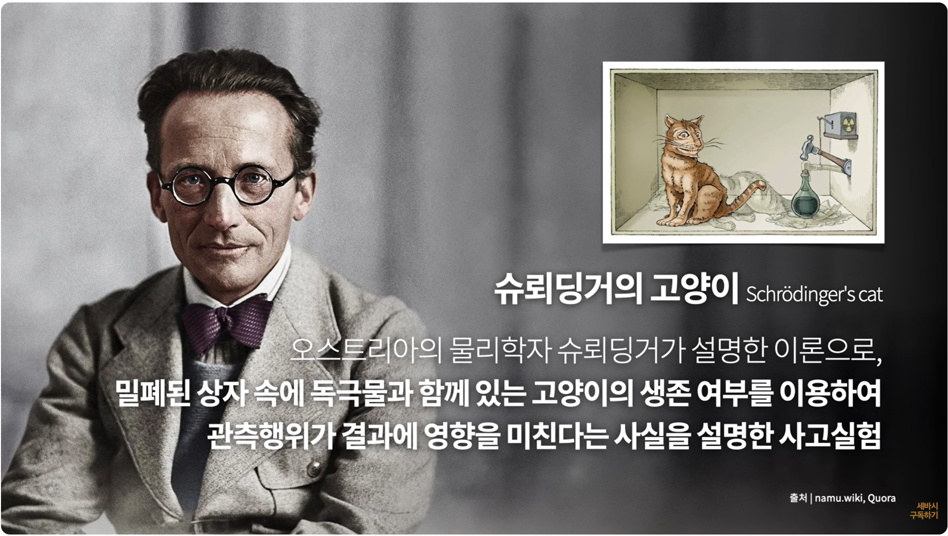 그렇기에 양자학의 현상을 비유적으로 일상 속으로 끌고 와서 정말 슈레딩거의 고양이가