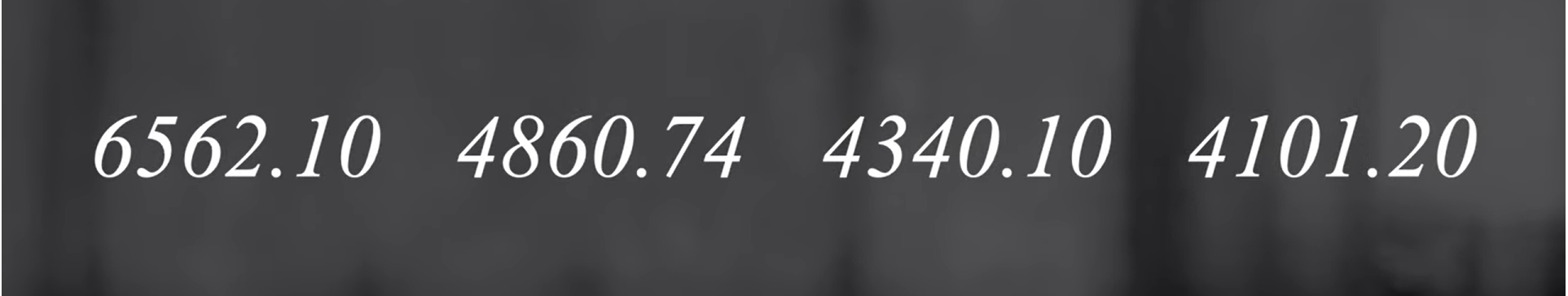 바로 이 4가지의 숫자 아까 보여드렸던 이 4가지의 숫자가 수소에서 발생하는 수소의 빛의 파장을 나타낸 숫자입니다.