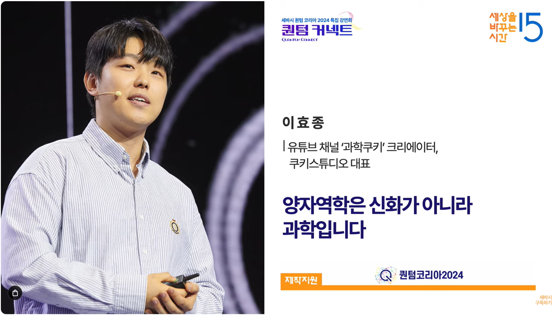 | 세바시 1861회 🧪 보는 것이 믿는 것! 양자역학 현상 관찰을 위한 여정 | 문종철 한국표준과학연구원 책임연구원 (1) | 2025.10.03 |