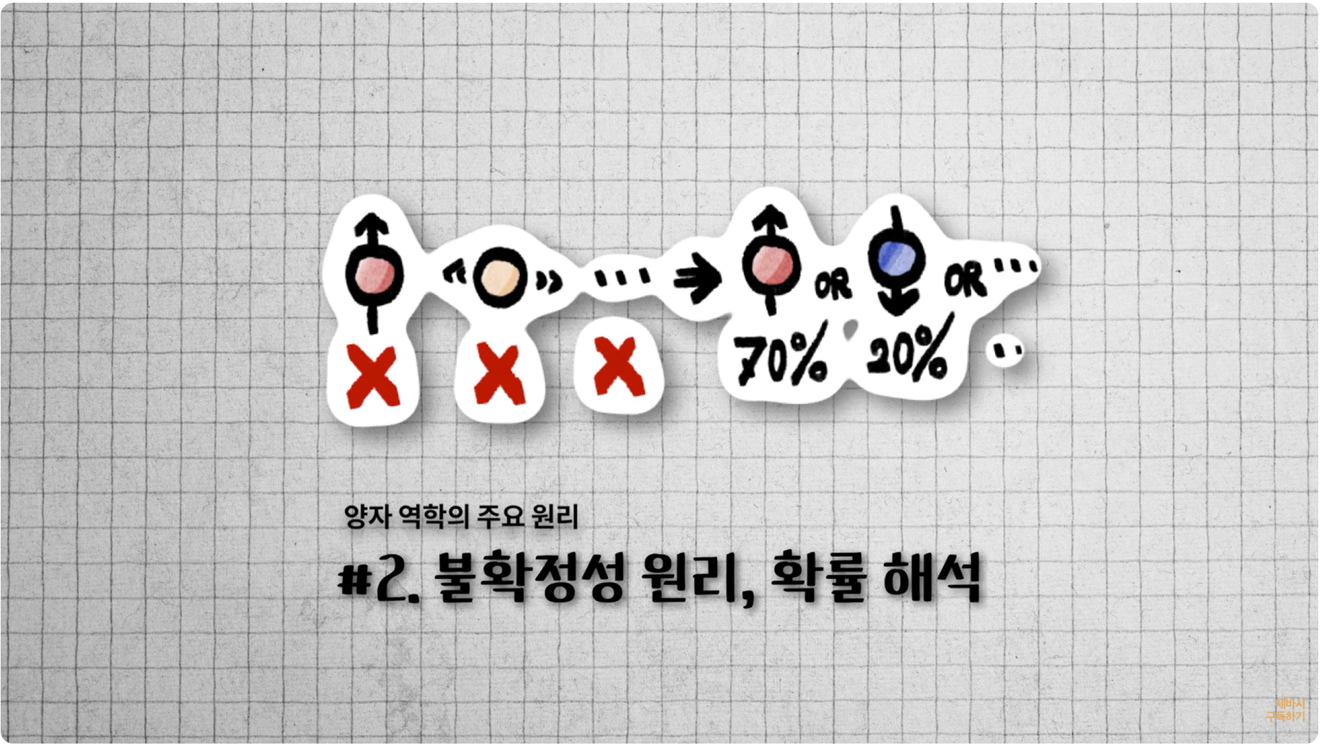 그리고 이것이 모두 확률적으로 몇 퍼센트 몇 퍼센트 몇 퍼센트로 동시에 모두 존재한다라고 하는 불확정성의 원리, 그리고 확률 해석이라고 하는 원리가 존재합니다.