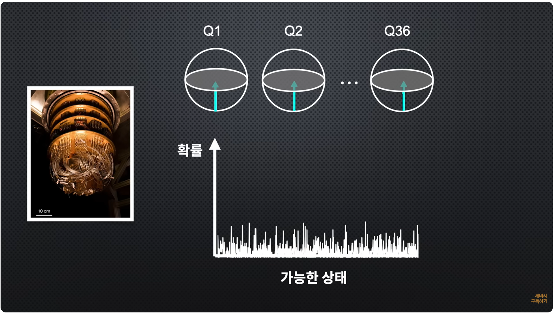 최근에 제가 한 연구에서는 구글 양자 컴퓨터에 36개의 큐비트를 썼습니다.