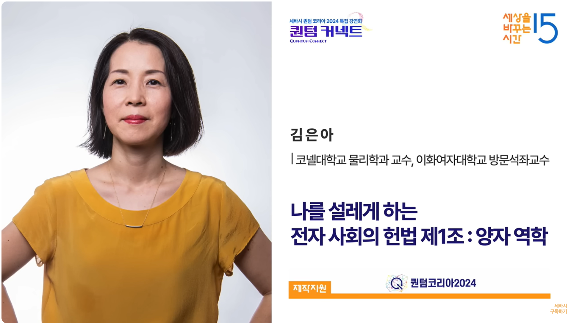 어릴 때 양자 다체계 이론에 호기심에 빠져 매일매일 배우는 삶이 행복한 이론 물리학자 김은아입니다.