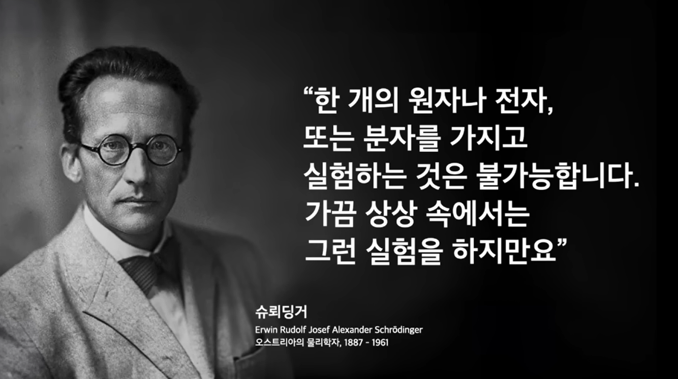 "한 개의 원자나 전자 또는 분자를 가지고 실험을 하는 것은 불가능합니다. 가끔 상상 속에서는 우리는 그런 실험을 하지만요."