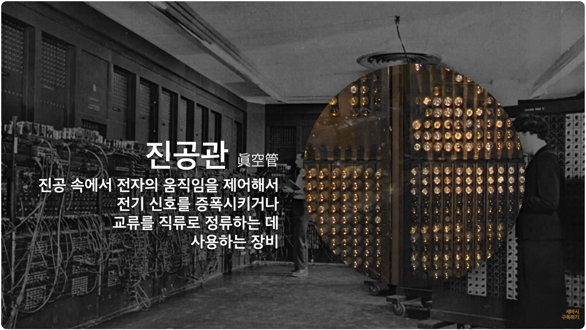 진공관(眞空管)이라고 하는 이런 전구 비슷한 그런 장비를 통해서 이제 컴퓨터를 만들었습니다.