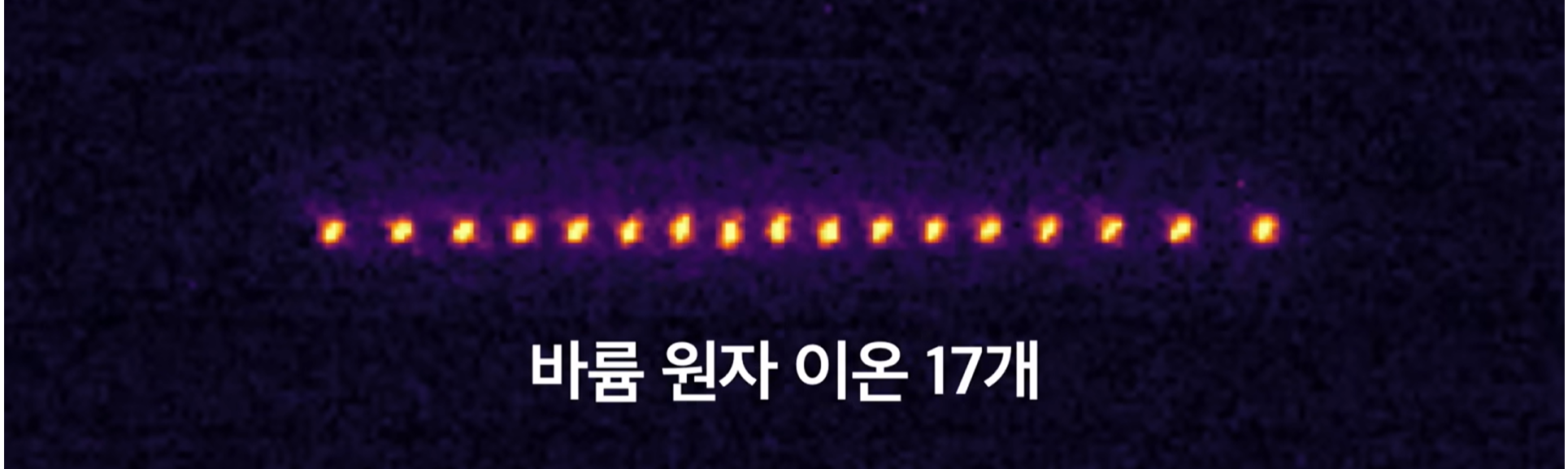 양이온 입자들을 레이저와 전기장을 이용해서 진공 안에 잡아둔 모습이고요.