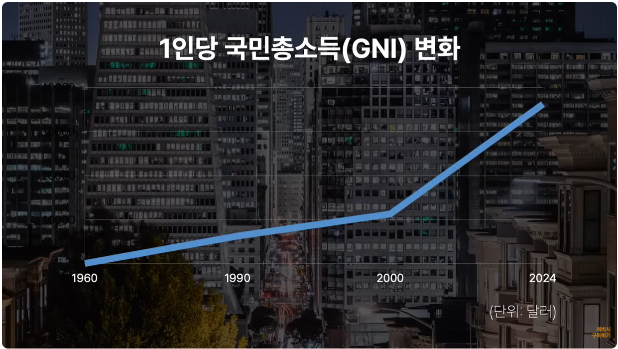 고도의 경제 성장을 가능하게 했고 그래서 1인당 소득이 쭉쭉쭉쭉 상승했어요.