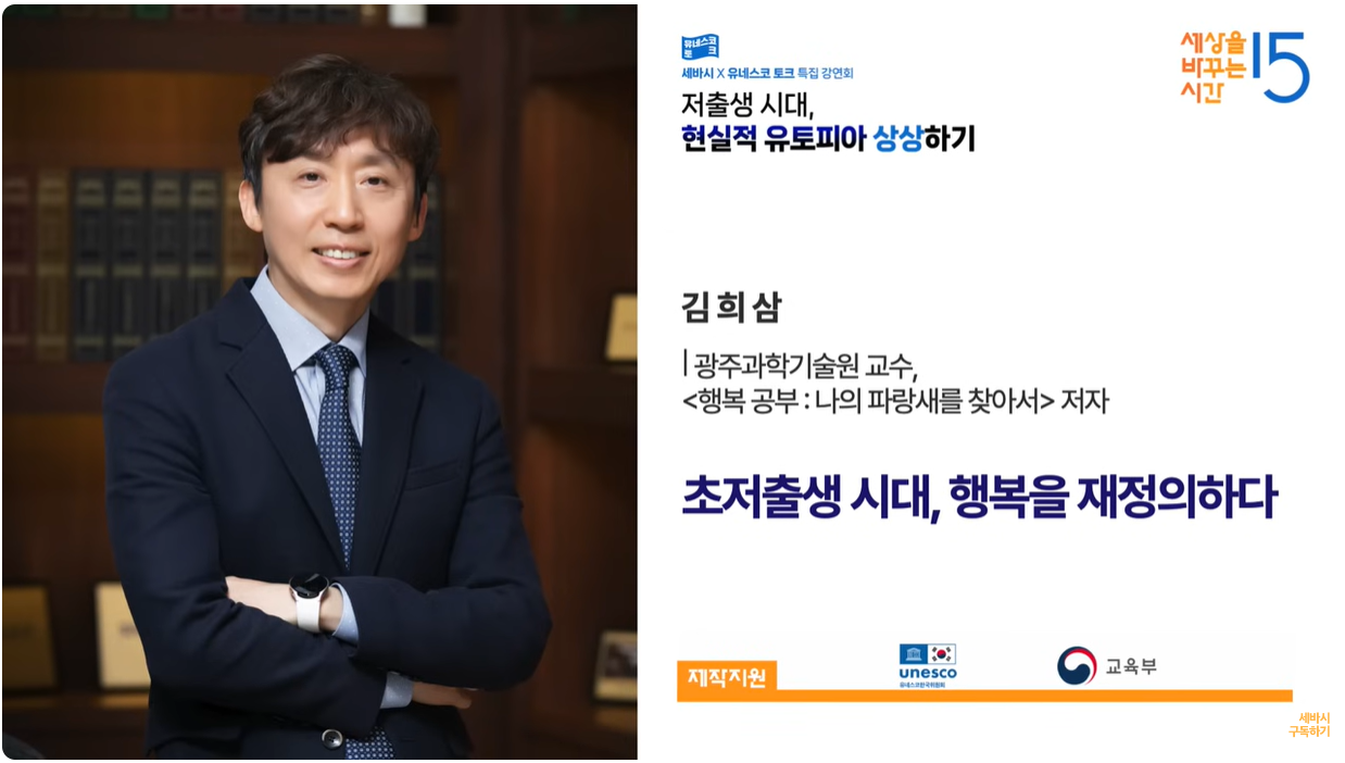 그래서 저는 이 세계의 짧은 이야기에서 이 초저출생 시대에 우리가 바라는 미래의 어떤 실마리를 좀 찾아보려고 해요.