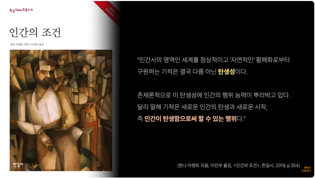 각 인간이 유일무이한 존재로서 새로운 시작을 할 수 있게 만든 출생 이게 더 중요하다는 거예요.