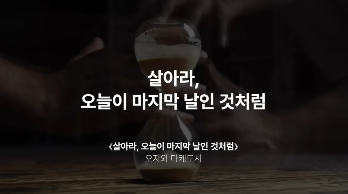 그러니까 오늘 살아라 오늘이 마지막 날인 것처럼은 뭔가 지금까지 안 해본 거를 다 해보고 뭔가를 해보는 게 아니고