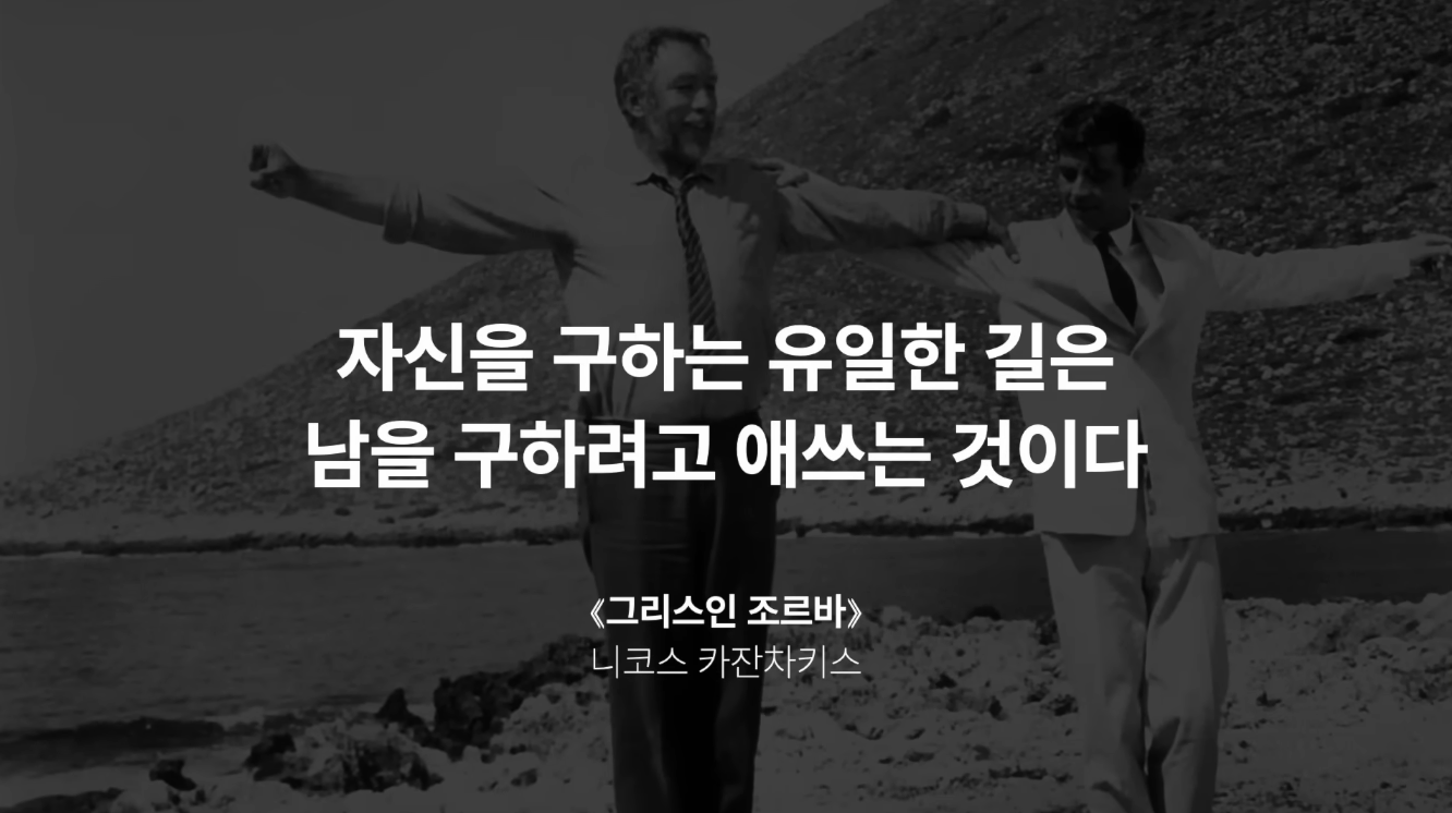 그래서 '그리스인 조르바'에서 나를 구하는 유일한 길은 남을 구하려고 애쓰는 것이다.
