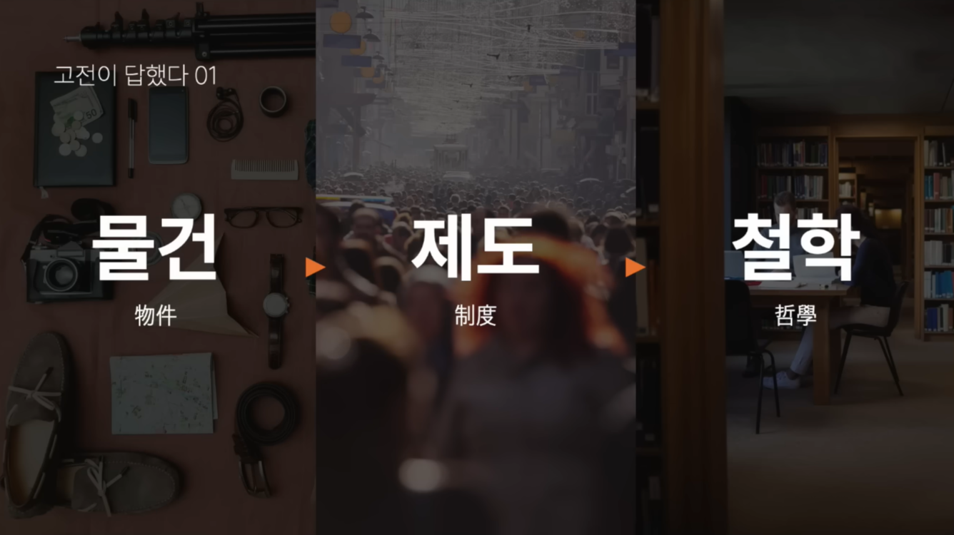첫 번째 단계는 물건, 두 번째 단계는 제도, 세 번째 단계는 철학