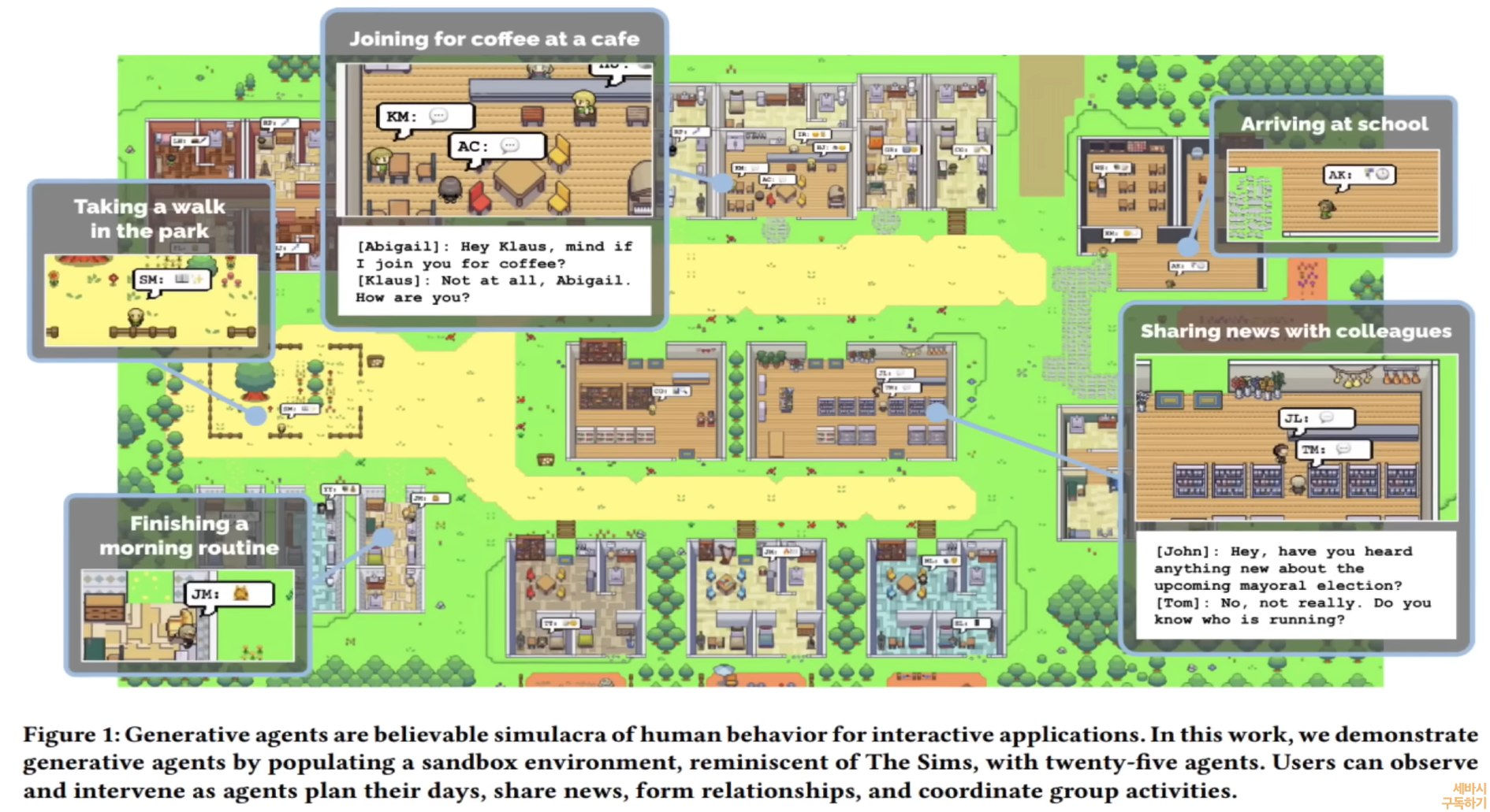 25개의 에이전트가 마치 우리 사람들이 하듯이 하루 일과를 보내요.