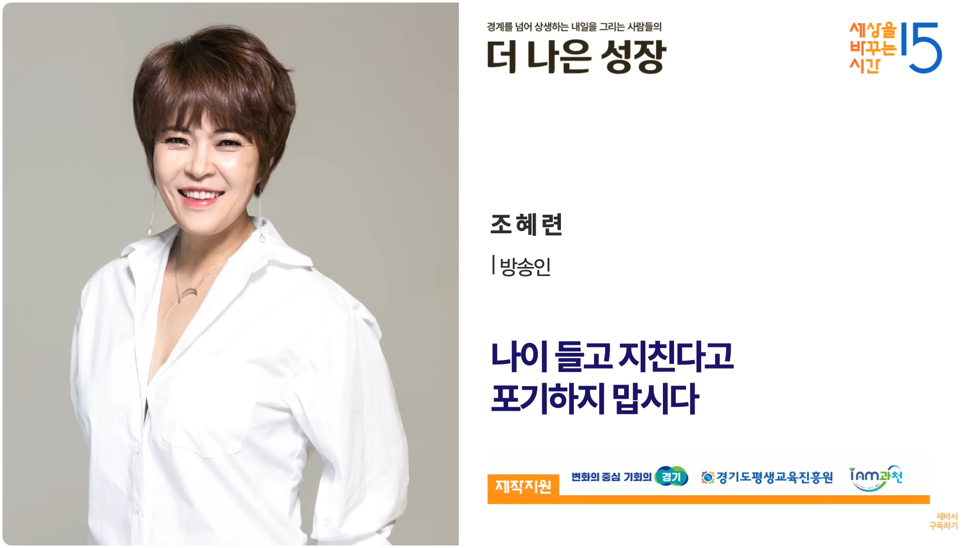 저는 오늘 나이 들고 지친다고 포기하지 말자 이 얘기를 한번 해보고 싶어요.