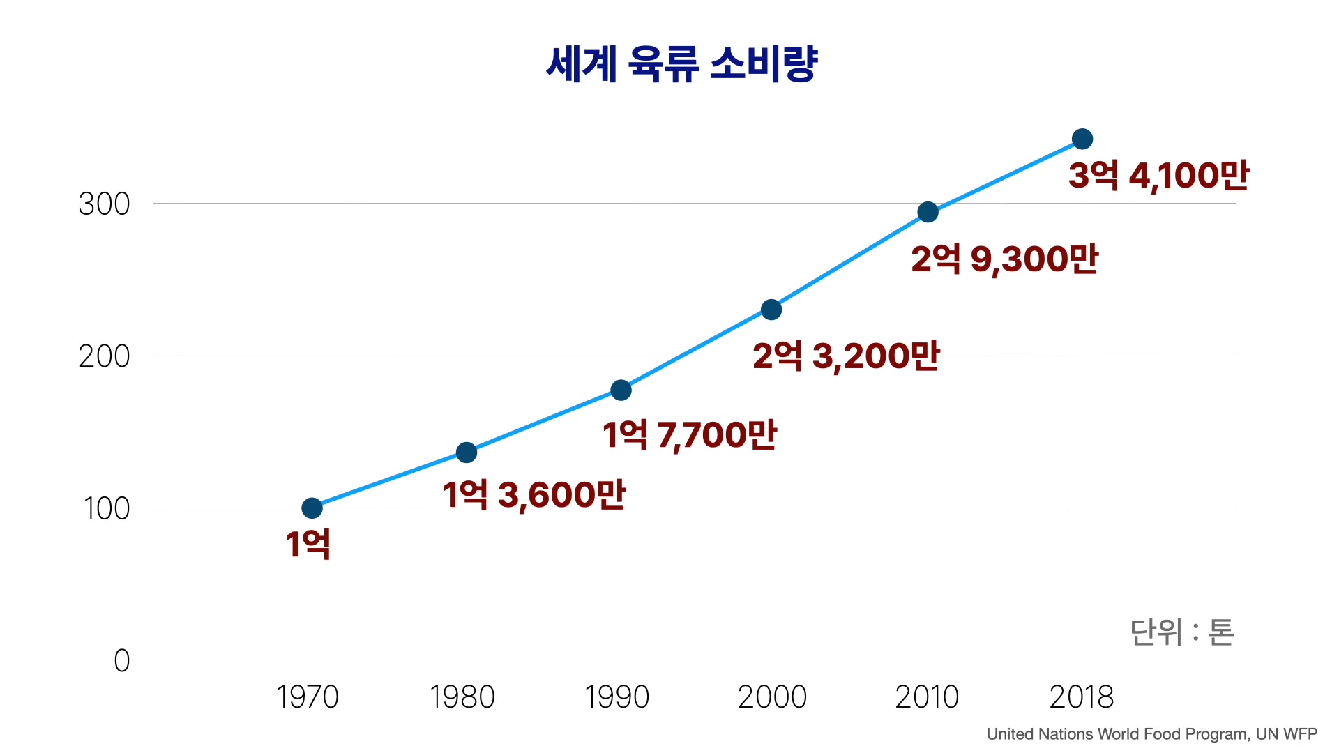 - 고기 소비 증가로 종 다양성이 급감했다.