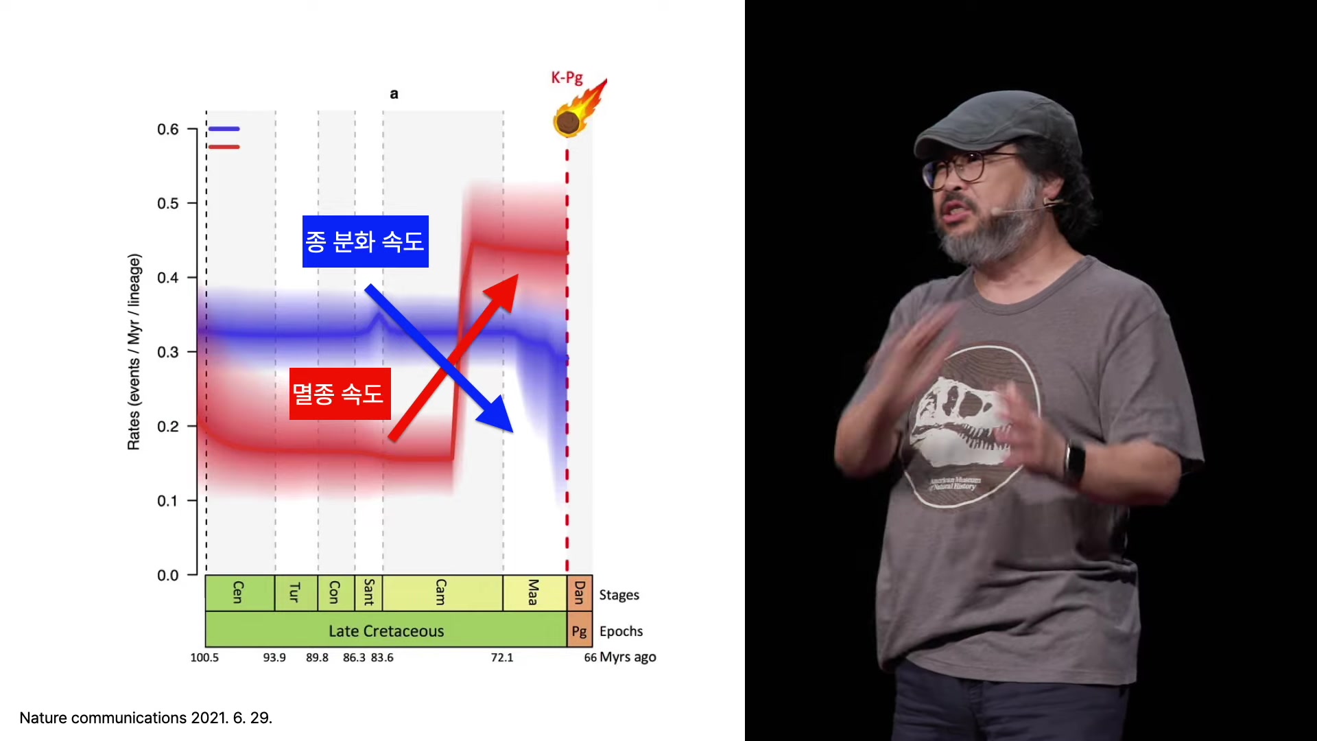 - 공룡도 다양성 상실 후 운석 충돌로 멸종했다.
