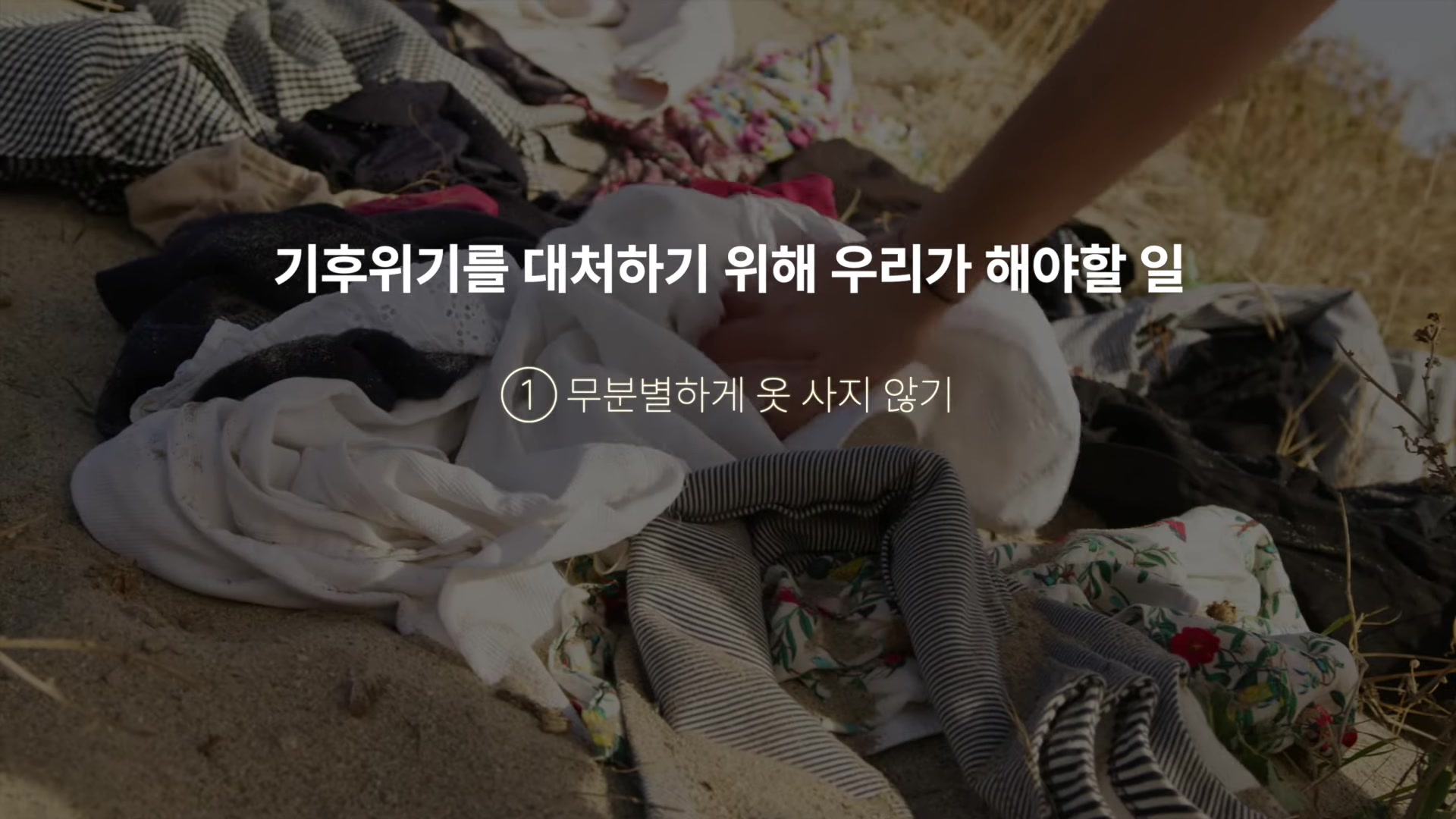 - 헌옷 수출은 개발도상국의 자립을 막는다. → “옷을 덜 사고, 덜 버려야 한다.”