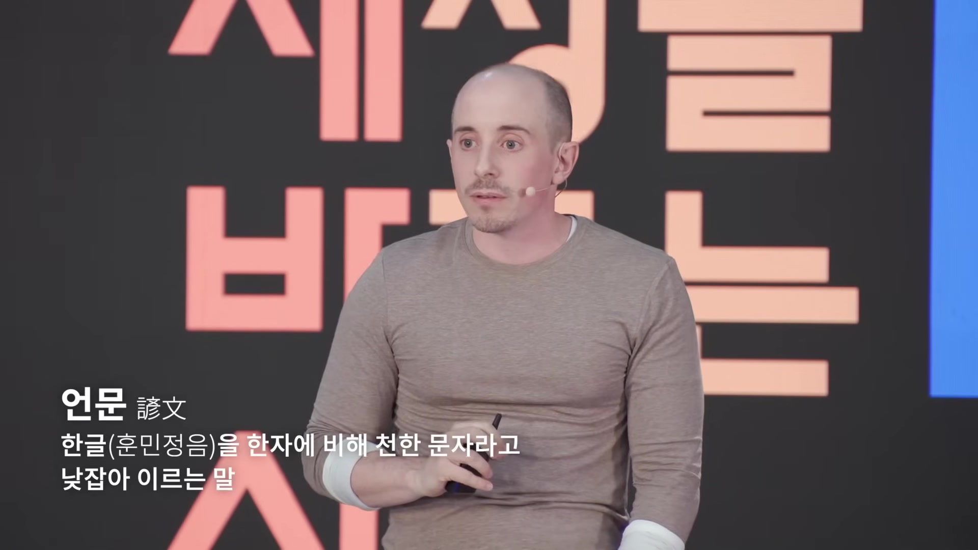 언문이라고 원래 전박한 문자라고 불렀었던 거거든요. 조선시대에.