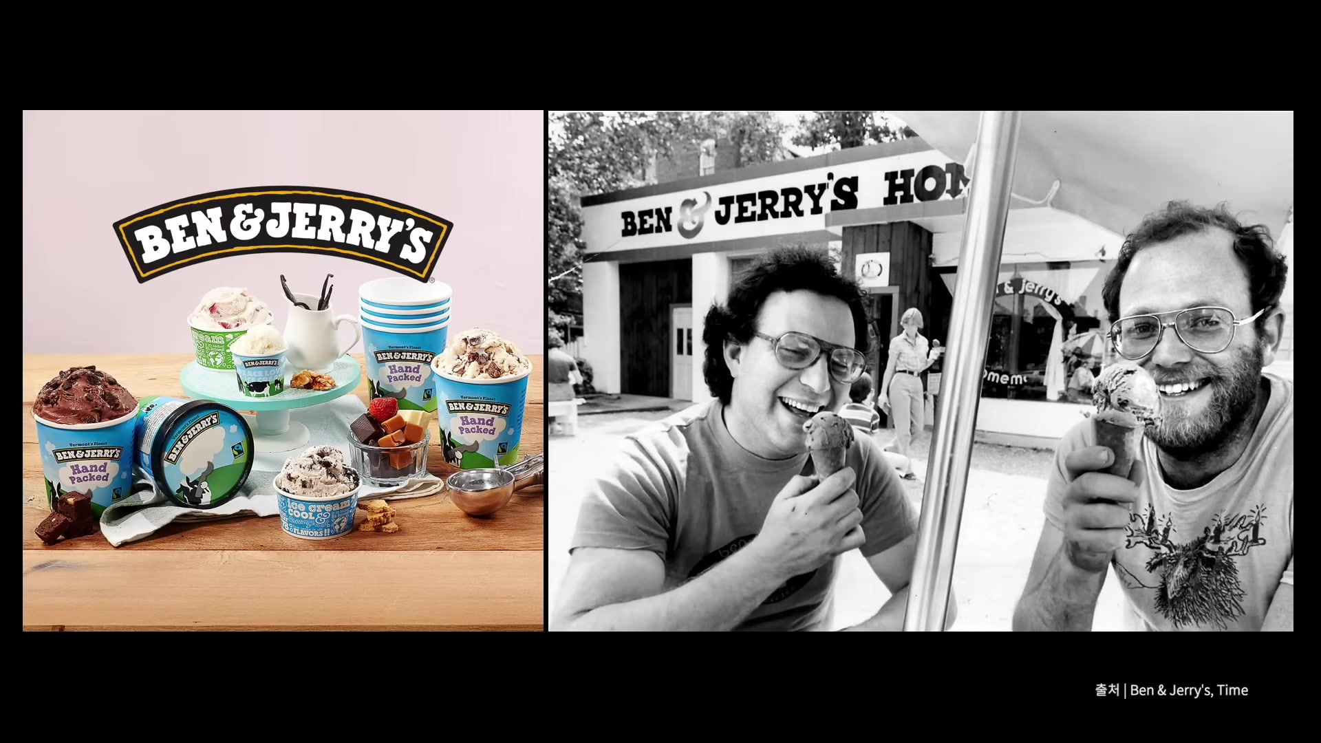 그래서 여러분들한테 공유를 드리고 싶었던 브랜드의 이야기가 바로 이 베앤 제리스라는 아이스크림 브랜드예요.
