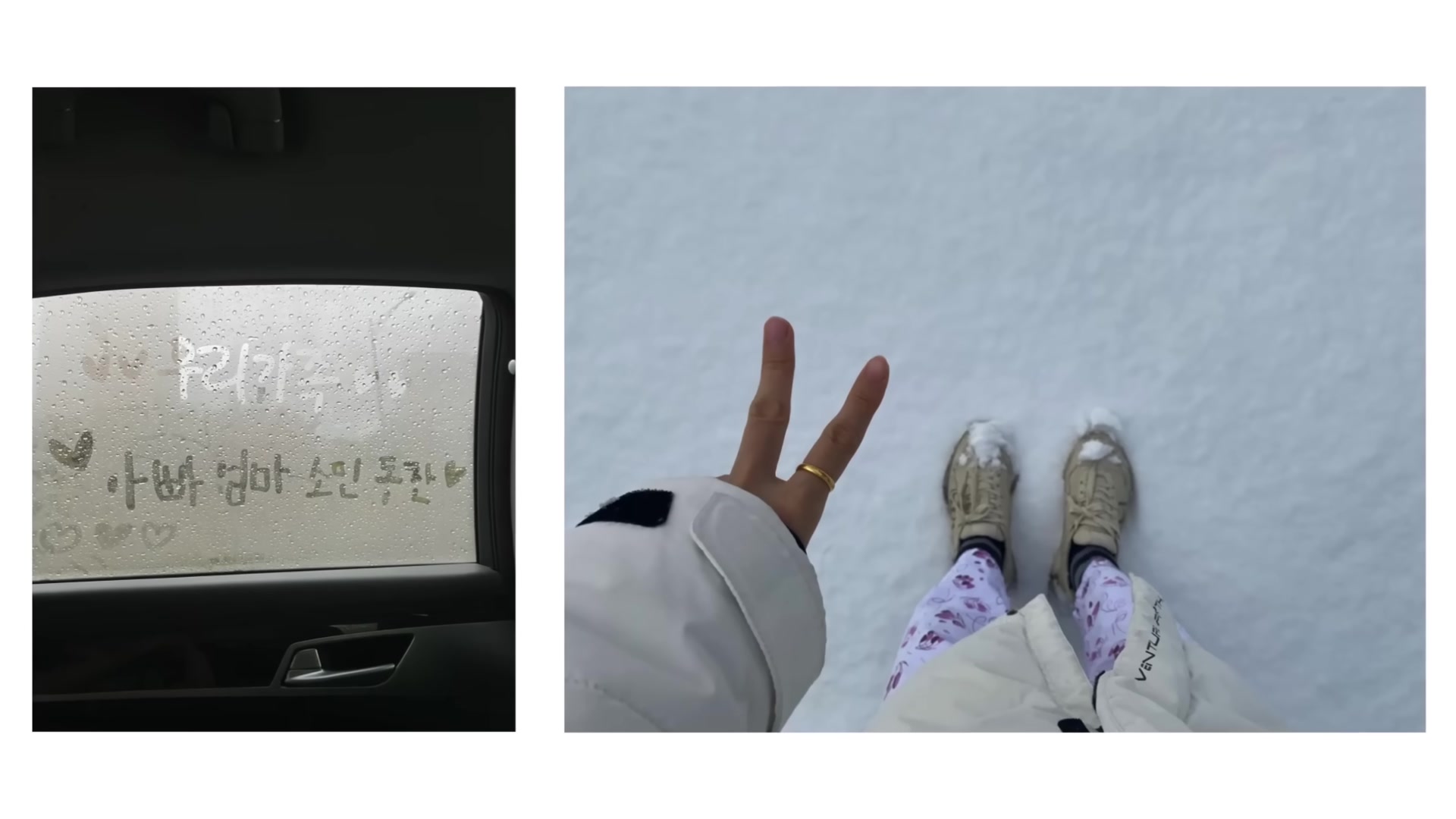 여기 왼편에 있는 사진이 제가 그날 아빠 차에서 혼자 창문에 이렇게 적어 놓은 낙서인데요