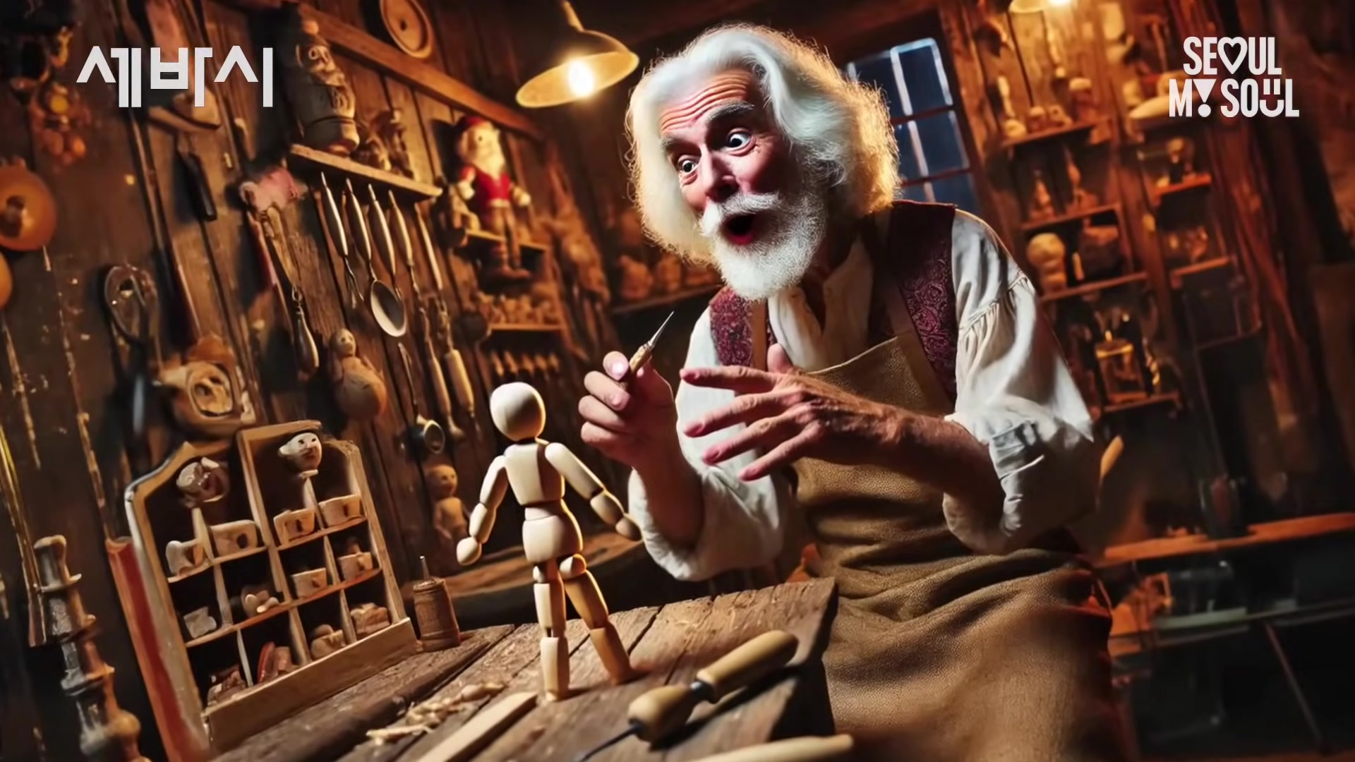 심심해서. 근데 다음 날 아침에 나무 인형이 움직이고 말을 하는 거예요. 피노키오처럼